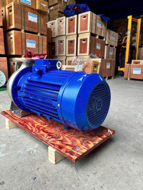 Động cơ điện ở phần thâm được bảo vệ bởi lớp vỏ gang chắc chắn, thiết kế dạng cánh giúp tản nhiệt tốt.